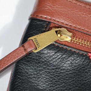 Fossil Fiona Leather Patchwork Colorblock Crossbody Bag Red Gold Brown Pre-Owned