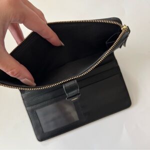 Fossil Fiona Tab Clutch Black Leather Wallet w/ Gold Hardware
