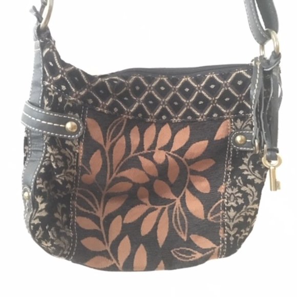 Fossil Floral/Geometric Fabric Shoulder Bag Adjustable Strap 11.5"x10.5"