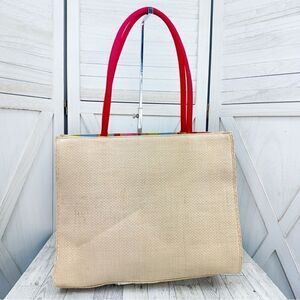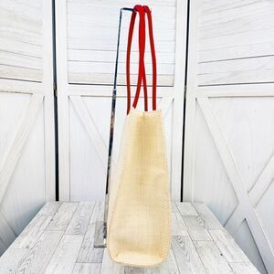 Fossil Forever Faux Straw Beach Vacation Tote Shoulder Bag Large Cream Red