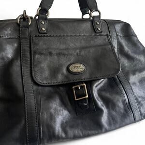 Fossil Framed Doctors Vintage Black Leather Weekender Travel Bag Overnight