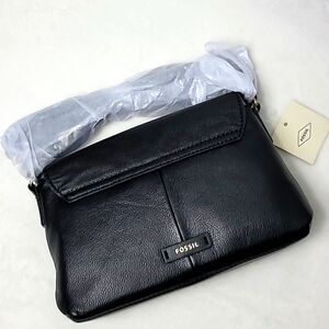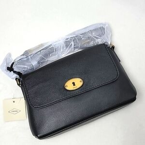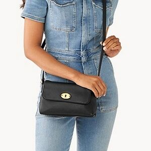 Fossil Gabriella Black Leather Small Flap Crossbody Bag
