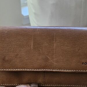 Fossil Genuine Brown Leather Womens Clutch Wallet Detachable Crossbody Bi Fold