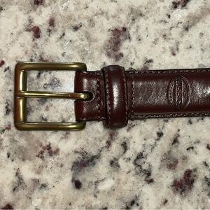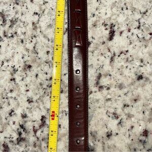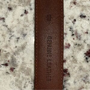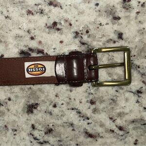 Never worn Fossil Genuine Leather Brown Belt 32” Braided Woven Bow Tie Embossed Solid Brass Buckle
