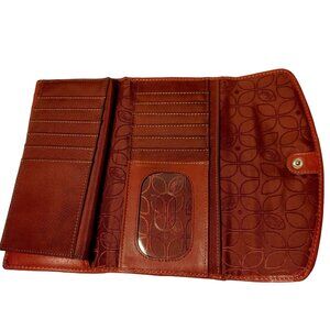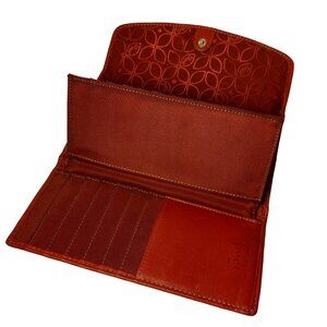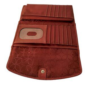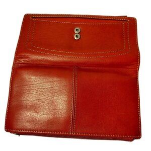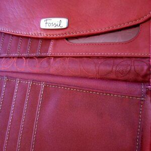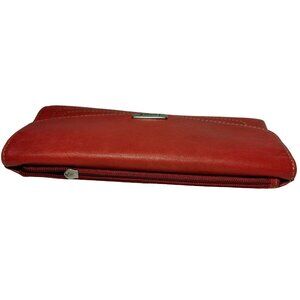 Fossil Genuine Leather Wallet Red Tri Fold 12 Card Slots Checkbook Flawed READ