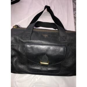 Worn once or twice like new condition!!!! Does not have key fob. Fossil Genuine Pebbled Leather Black with gold hard wear Top Handle Adjustable Crossbody Bag. Shipped with USPS