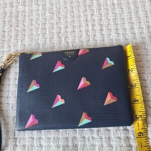 Fossil Geometric Print Multicolor Wristlet. Preowned. Minor wear. Top Zipper Closure. Gold Tone Hardware. Measurements included in pictures. Good Condition. Smoke Free Home. Offers Welcome.