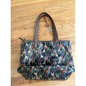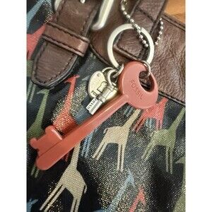Fossil Giraffe Coatted Canvas Tote Shoulder Bag Keyper Lock Charm Multicolor