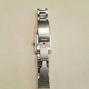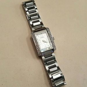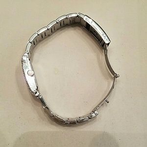 Stainless steel, white faced with Rhinestones inset, bracelet watch. Gently used. Requires a new battery.