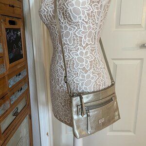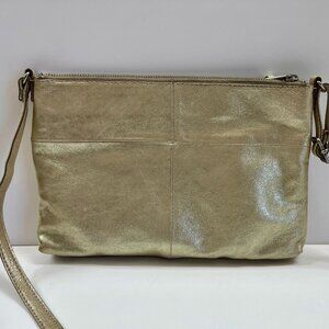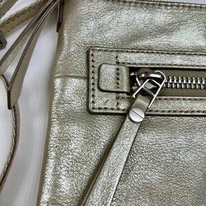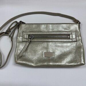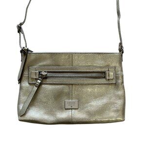 Fossil Gold Metallic Soft Zip Leather Crossbody - EUC