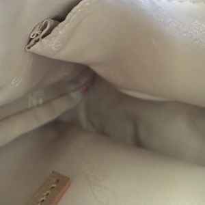 EUC gold purse. 12" long 4" wide 6" deep. See pictures for stains on lining & minor wear on edge of purse. Great condition, smoke free.