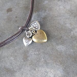 Fossil Gold & Silver tone Hearts Corded Bracelet w/ Button Toggle Clasp