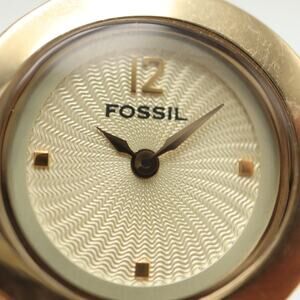 Fossil Gold Tone 25mm Textured Dial Watch Circle Link Bracelet with New Battery