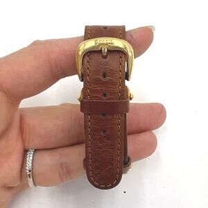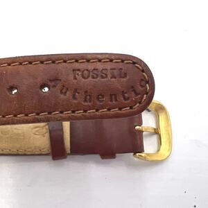 Fossil Gold Tone Rectangle Brown Band Wrist Watch *Read*
