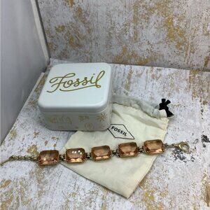 Fossil Gold and Peach Glass Bracelet with Links Design