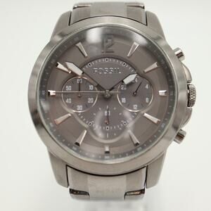 Fossil Grant Mens Chronograph 44mm Watch Gray Gunmetal Steel w New Battery