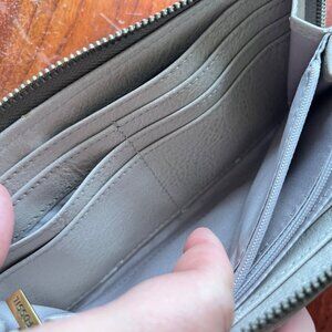 Fossil Gray Leather Zippered Wallet With Wristlet Strap