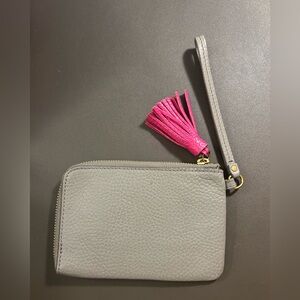 Fossil Gray Wristlet with Pink Tassel — EUC