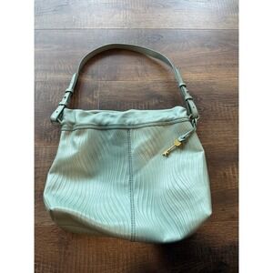 Fossil Green Leather Hobo Bag Purse Handbag Key Charm Wave Design