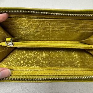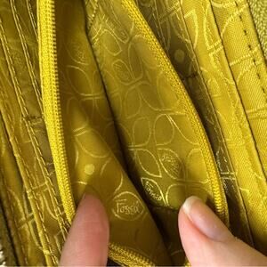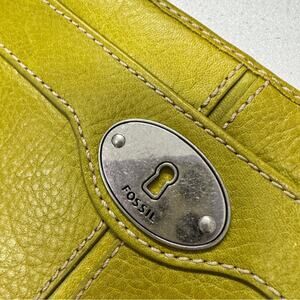 Fossil Green Leather Marlow Maddox Zip Clutch Wallet Boho Classic