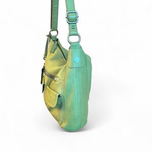 - Genuine soft green leather with signature Fossil logo hardware