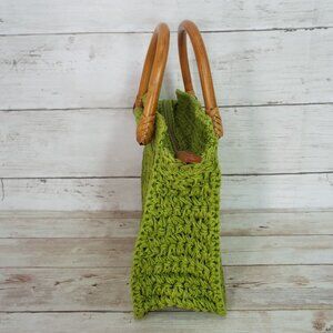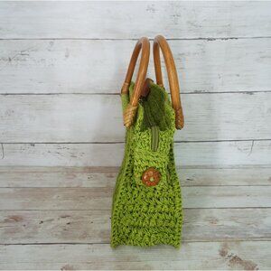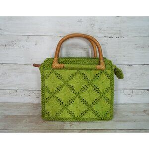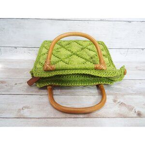 Fossil Green Raffia Straw Bamboo Handle Satchel Bag