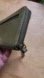 For someone on the go, this small Fossil zip leather wallet wristlet is a must-have. Unzipped, the interior has multiple compartments to put cards, license and cash. It has an outer zip compartment for change.