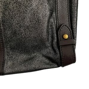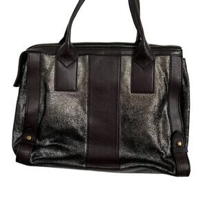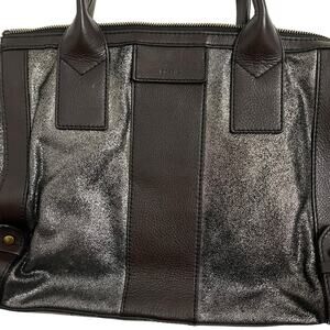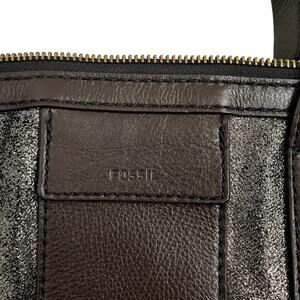 Fossil Gwen Leather Handbag Metallic Glitter Zip Satchel Brown Purse