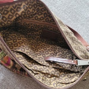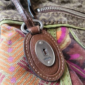 Fossil Handbag Mixed Media Boho Print Canvas Crossbody Bag Strap