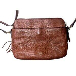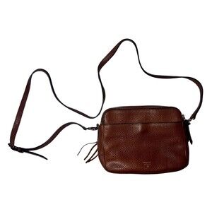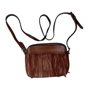 Fossil Handbag Purse Sydney Fringe Pebbled Leather Soft Brown Crossbody