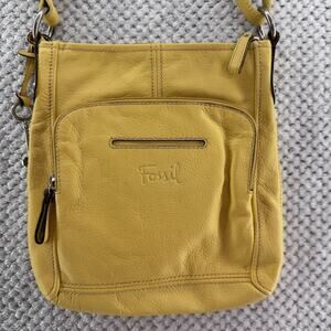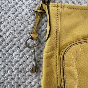 Fossil Hanover Leather Pebbled Crossbody Bag Butter Yellow Zipper Bag Purse Y2K
