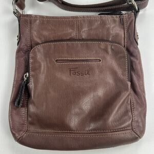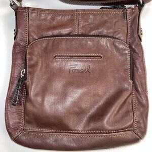 Fossil Hanover Square Crossbody Leather Messenger Bag Rich Brown Multipocket