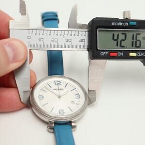 Fossil Heather Silver Tone Womens 42mm Watch Blue Leather ES3279 w New Battery