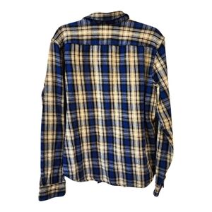 Fossil Heavyweight Flannel Shirt Men’s L Blue Beige Plaid Button-Down Cotton