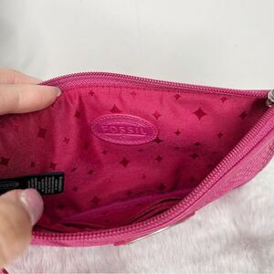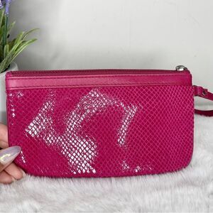 Fossil Hot Pink Cow Hide Leather with Snake Emboss Wristlet Wallet Pouch