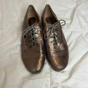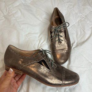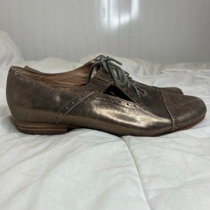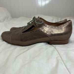 Fossil Irridescent Bronze Gold Leather Cut Out Loafers Size 9