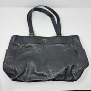 Fossil Issue No. 1954 Black Genuine Leather Satchel Purse Bag Messenger Bag
