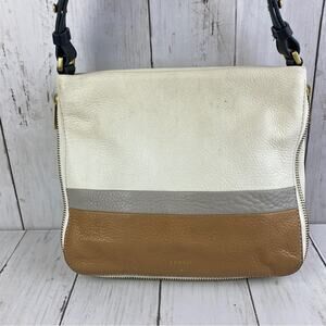 Fossil Ivory Tan Preston Pebble Cowhide Leather Crossbody Bag