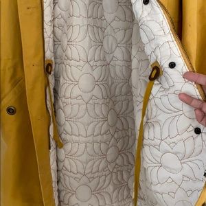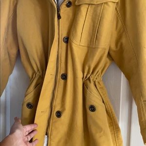 super cute & comfy long Fossil Jacket. it’s mustard yellow with faux fur collar. it’s perfect for this up coming winter. it’s heavy. there are a few dirty marks as seen in the pictures. Can be tightened at the waist to give a more flattering shape