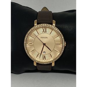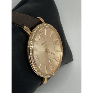 Fossil Jacqueline ES3546 Women Brown Leather Analog Rose Dial Quartz Watch WO47