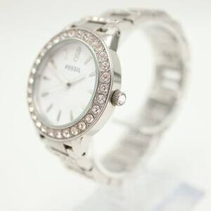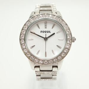 Fossil Jesse Silver Tone 34mm Gem Set Bezel Womens Watch with New Battery