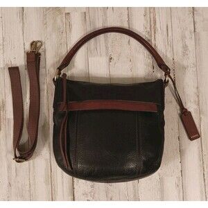 Fossil Jolie Hobo Crossbody Bag Purse Pebbled Leather Black Brown
