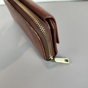 Fossil Jori Flap & Zippered Closure Wallet Brown Leather