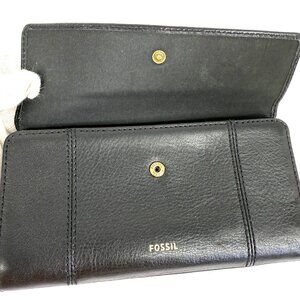 Fossil Jori RFID Flap Clutch Wallet Black Leather