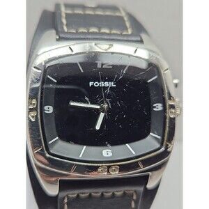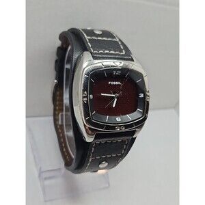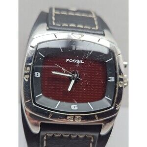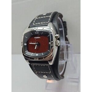 Fossil Kaleido Big Tic AM3696 Mens Watch Black Red Dial Cuff Leather New Battery