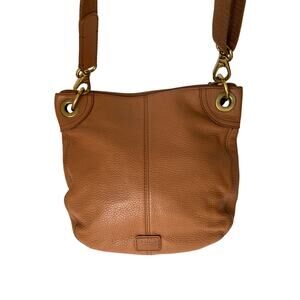 Women’s Tan Pebbled Leather Fossil Convertible Crossbody Tote Bag, Or Leather Shoulder Bag With Removable & Adjustable Strap. Adjust or remove strap to convert.