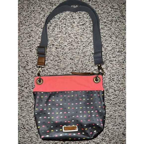 Fossil Keely Crossbody Shoulder Bag Pink Gray Multi Color Dot Adjustable Strap