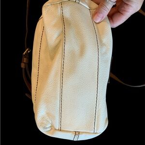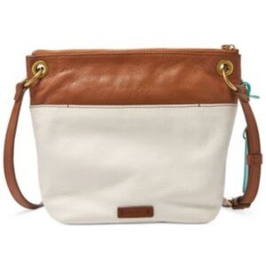 Stylish and versatile, this brown and white leather crossbody bag is perfect for any occasion. Its sleek design and quality materials make it a must-have accessory.