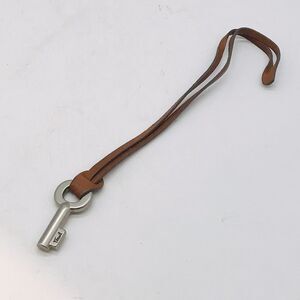 Fossil Key Charm Purse Accessory Key Fob Keychain Brown Leather with Silver Metal Key for Handbag.