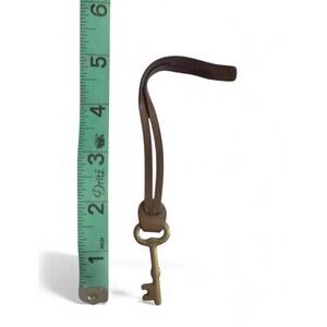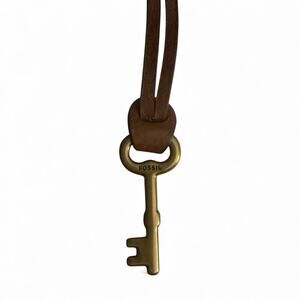 Fossil Key Fob Hang Tag For Purse Bag Or Keys Leather Strap Brass Skeleton Key